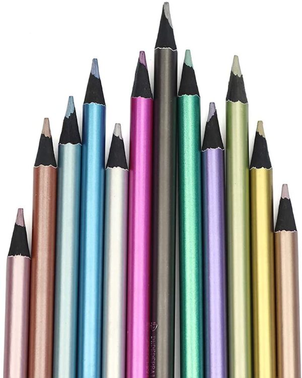 【12 Metallic Colored Pencils】 – Vivid metallic colored add feature and shine to your painting or note Premium pencil inside provide you with a more smooth writing and abundant color, make your painting more flexible and vivid.