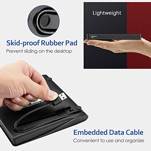 【Ingenious Design】 This ultra-slim CD/DVD player for laptops equipped with an eject button so that you needn’t worry about your disc getting stuck inside this external CD/DVD drive. Besides, the copper mesh technology of this external component, you can be rest assured of stable data transmission