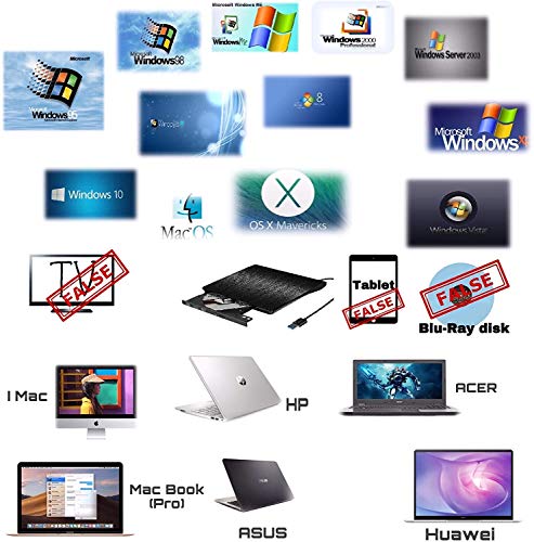 【Wide Compatible】This external dvd cd drive is compatible with Windows 98 / SE / ME / 2000 / XP / Vista / Windows 10/8/7,Mac ios(ios 8.6 to 10.14). And perfect for PC, Laptop, Comprehensive Computer, Internal PC hard disk reader