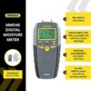 MOISTURE READER: The mold test features large 0.3″ high digits in a backlit LCD for quick and easy detecting. Our mildew scanner includes extra 8mm stainless steel pins, a protective cap that doubles as a calibration checker, and a “9V” battery.