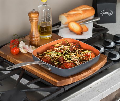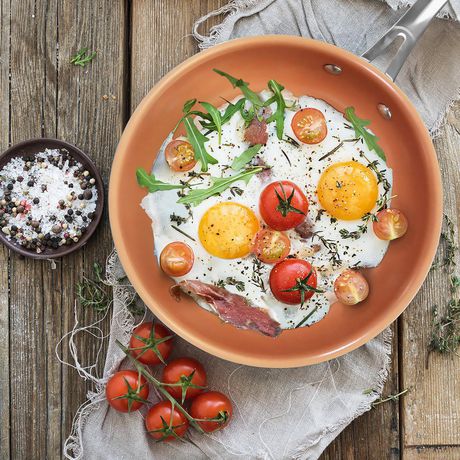 Award winning Ti-Cerama coating ensures the ultimate release — everything just slides right off the pan, no need for oil or butter