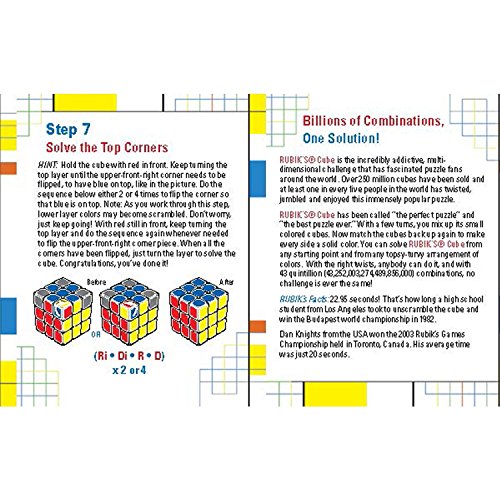INCLUDES PUZZLE SOLUTION GUIDE: This Rubik’s Cube puzzle game includes a 7-Step Solution Guide. It includes detailed, step-by-step moves, and interesting Rubik’s Cube fun facts