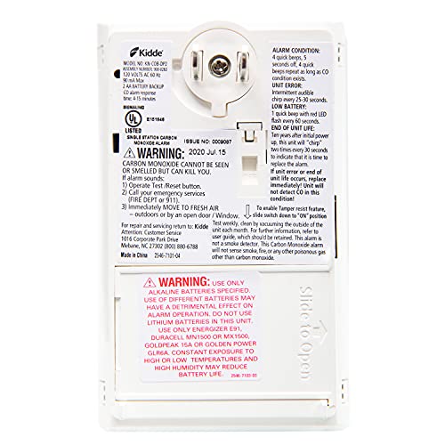 The Kidde Carbon Monoxide Detector, AC Plug-In with Battery Backup, model KN-COB-DP2, operates with an AC Plug-In that can be easily installed in any AC wall outlets, while 2-AA batteries provide continuous protection from carbon monoxide, even during power outages. When the CO alarm detects carbon monoxide gas, 4 beeps will sound. The also contains a Replacement Alert, which chirps every 2 times every 30 seconds to indicate that its time to replace the detector. For whole home family protection, place 1 carbon monoxide detector on each level of your home & in your bedroom. UL Certified with a 10-year limited warranty. Meets requirements of UL 2034.