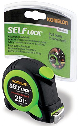 Details: Product Description 416-SL2825 Features: -Self locking mechanism allows blade to be extended smoothly. -Push button allows blade to be retracted smoothly. -Nylon coated blade for maximum durability. -Impact resistant rubberized case. Product Type: -Tapes. Dimensions: Overall Product Weight: -0.83 Pounds. From the Manufacturer The Self Lock Series of tape measures is a unique line of tape measures. The series features 12-foot x 5/8-inch, 16-foot x 3/4-inch, 16-foot x 1-inch, 25-foot x 1-inch, 25-foot x 1-inch inch/Engineer scale. The Self Lock Series features a unique self locking mechanism that allows the blade to extend smoothly as well as a push button release that insures complete control when retracting the blade. This is the ideal measuring tool for anyone from the do it yourselfer to a professional tradesmen. The series also provides an impact resistant rubberized case and a nylon coated blade for maximum durability.