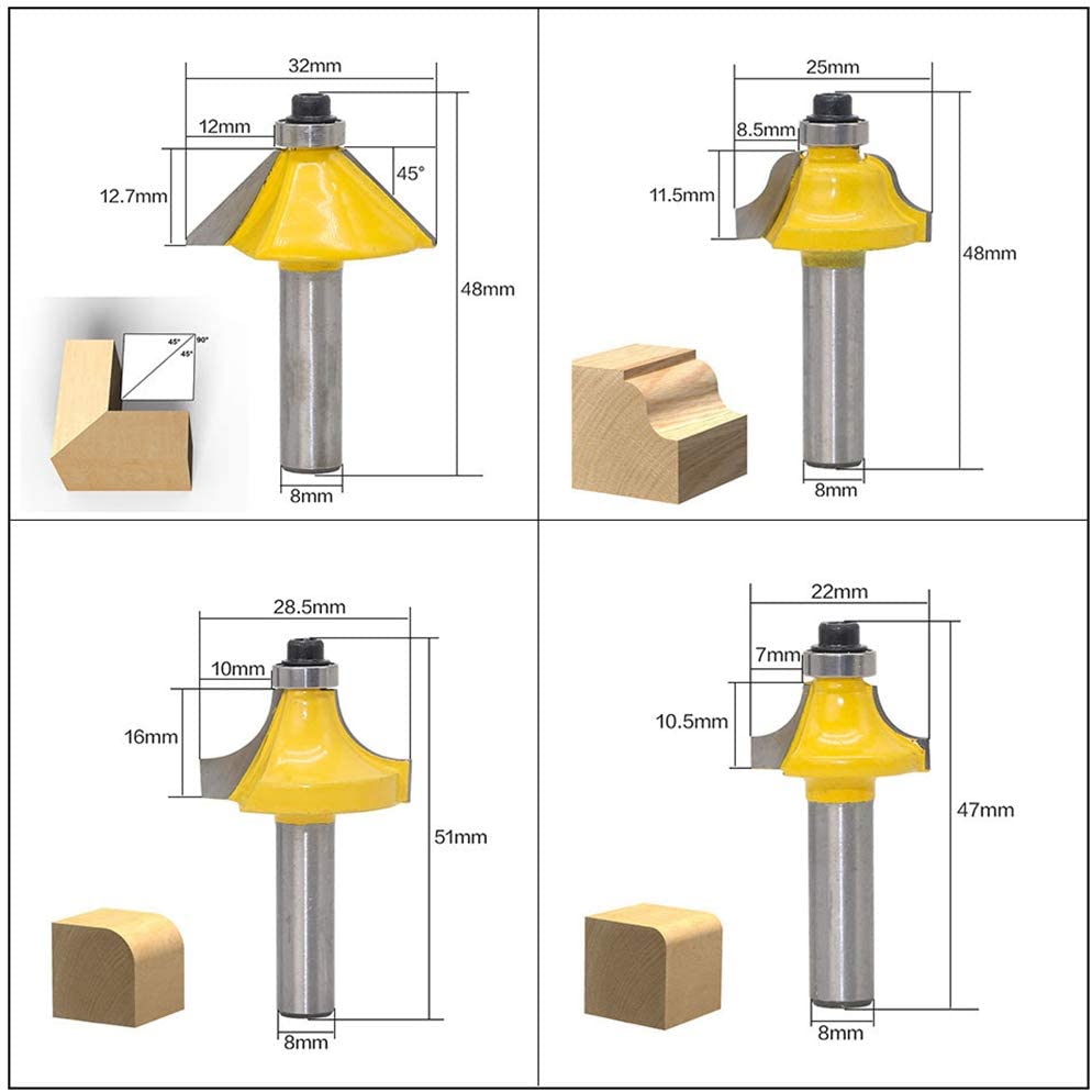 8mm shank router bit set with tungsten carbide tips.