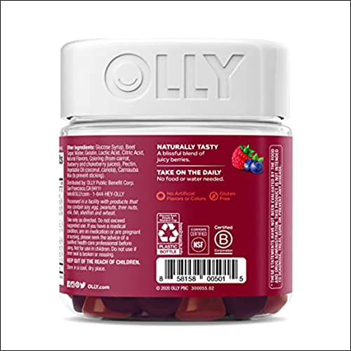 Details: OLLY Perfect Women’s Multivitamin gummies are naturally delicious, scientifically formulated, gluten free gummy vitamins. Our Blissful Berry gummy vitamins for women are packed with essential nutrients to nourish you daily so you can keep doing your thing. This womens multivitamin blend features B Vitamins to support energy, Vitamin D and calcium to boost bone health and Vitamins A, C & E. The chewable daily vitamins are a powerful blend for overall wellness and to help fill the gaps when your eating habits are a little less than perfect.* Good health is at the center of everything we do. That’s why we’ve made it our mission to make nutrition easy to understand. We do it by crafting products that are as effective as they are delicious—because we know when something feels good, you’re more likely to do it.* *These statements have not been evaluated by the Food and Drug Administration. This product is not intended to diagnose, treat, cure or prevent any disease.