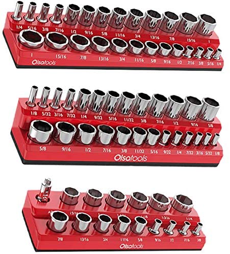 ★ MAKE YOUR JOB LESS FRUSTRATING IN MINUTES – These Olsa Tools Magnetic Socket Organizer Set Kit (for SAE sockets) can store up to 68 of your 1/4″, 3/8″, and 1/2″ drives SAE sockets. That’s right all of your tools in one place, what you always wanted. Start enjoying the neatness and organization you deserve.
