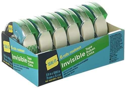 Details: Seal-It invisible stationery tape with matte finish is perfect for the office and home use. The patented press N’ Cut dispenser offers 1000 inches of invisible tape with our exact cut technology. This technology allows you to cut off the exact amount of tape needed avoiding wastage. The tape unwinds smoothly while using for everyday packing, wrapping or mailing. Frosted finish on the roll, but invisible on paper. Perfect for indoor and outdoor use, also ideal for everyday packaging or arts and crafts. You can write on it with pen, pencil or marker. The tape cuts well on any metal blade dispenser.