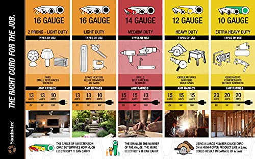 Details: Product Description Southwire 2588 12/3 SJTW vinyl extension cord with lighted end, Yellow, 50-Foot. Outer jacket won’t mark floors or walls. Reinforced blades help prevent accidental bending or breaking. Vinyl jacket resists moisture, abrasion and prolonged exposure to sunlight. Industry approvals: UL/cul/ETL listed/meets OSHA requirements for outdoor use. Molded plugs and heavy-duty strain relief protects electrical connections resulting in longer cord life. Dual sourced cord. From the Manufacturer Southwire Model 02588 is a 50 foot 12/3 vinyl jacketed extension cord. This cord features a lighted end to let you know you have power to the end of the cord when you need it. The Vinyl jacket is moisture and abrasion resistant and will resist prolonged exposure to sunlight. This cord is Rated for Outdoor Use and is UL listed.