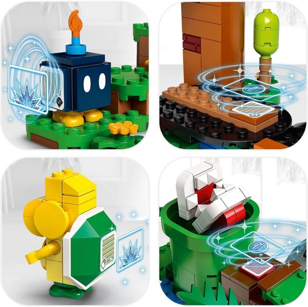 Includes Bob-omb, Koopa Troopa and Piranha Plant toy figures for Mario to defeat (Starter Course set Mario figure is not included)